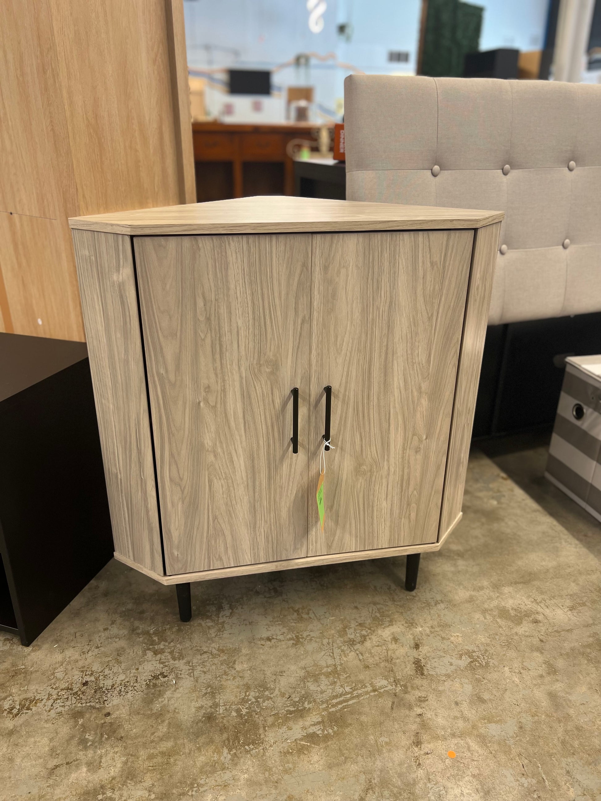 Contemporary Double Door Corner Accent Cabinet – Birch | Dimensions: 32in H x 30in L x 18in W | Weight: 51 LBS | Retail Price: $170