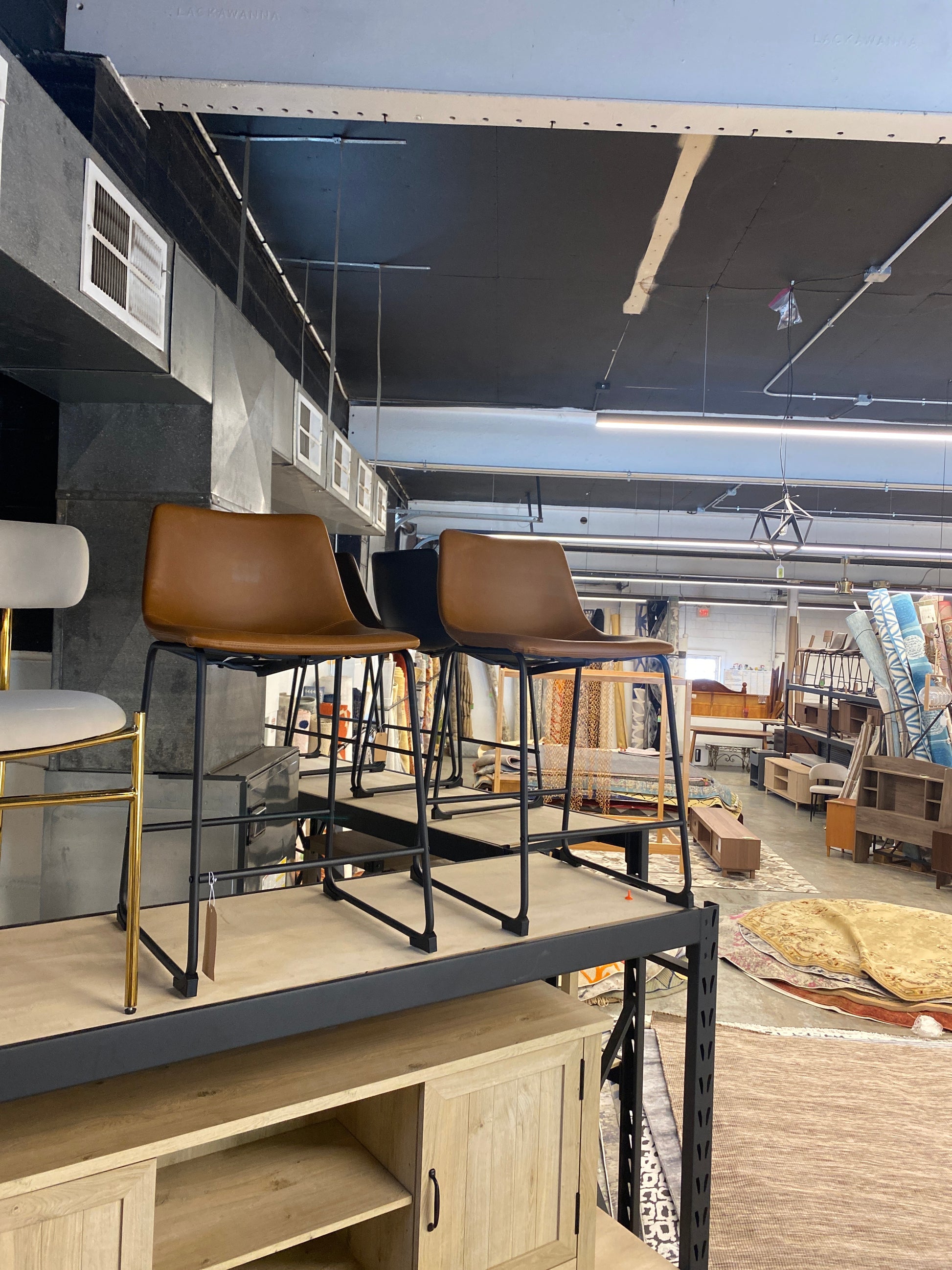 24" Industrial Faux Leather Counter Stools, Set of 2 - Whiskey Brown Retail $205