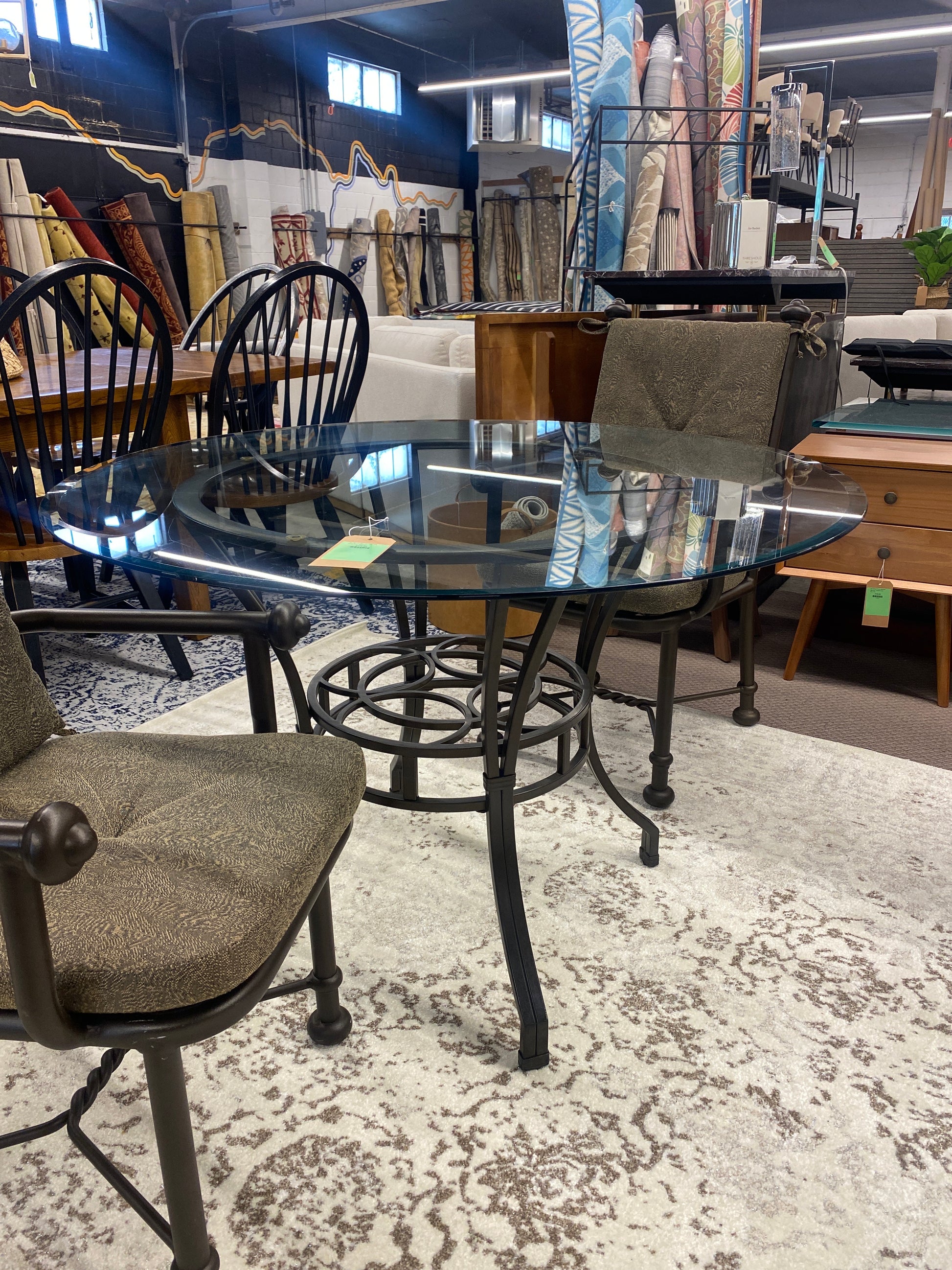 45in Round Glass Top Table with Metal Base *donated
