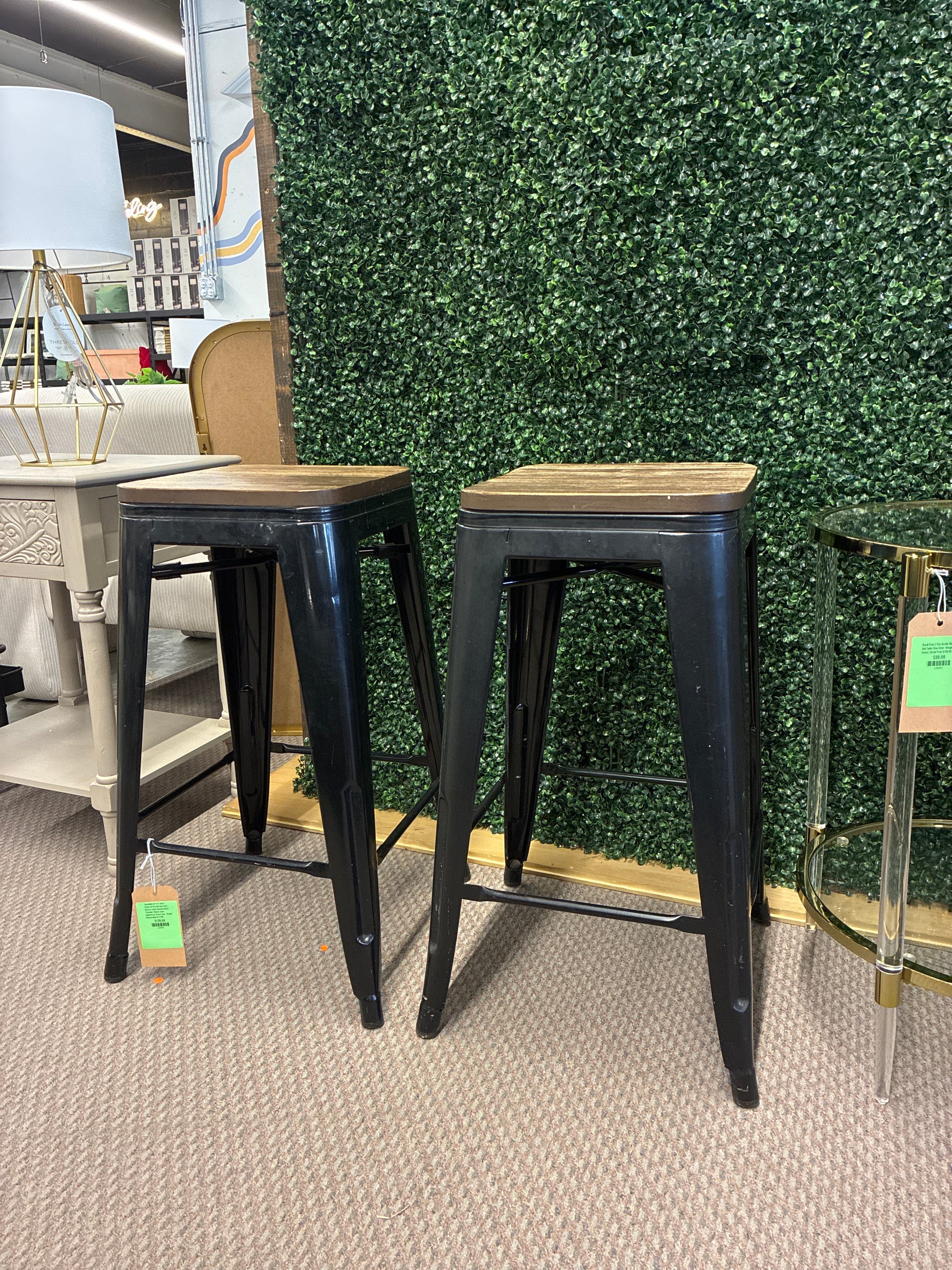 Assembled Set of 2 Sodra Industrial Rounded Seat Wire Counter Height Barstool Black - Threshold: Modern Linen Upholstered, Steel Frame - Retails Unassembled for $195