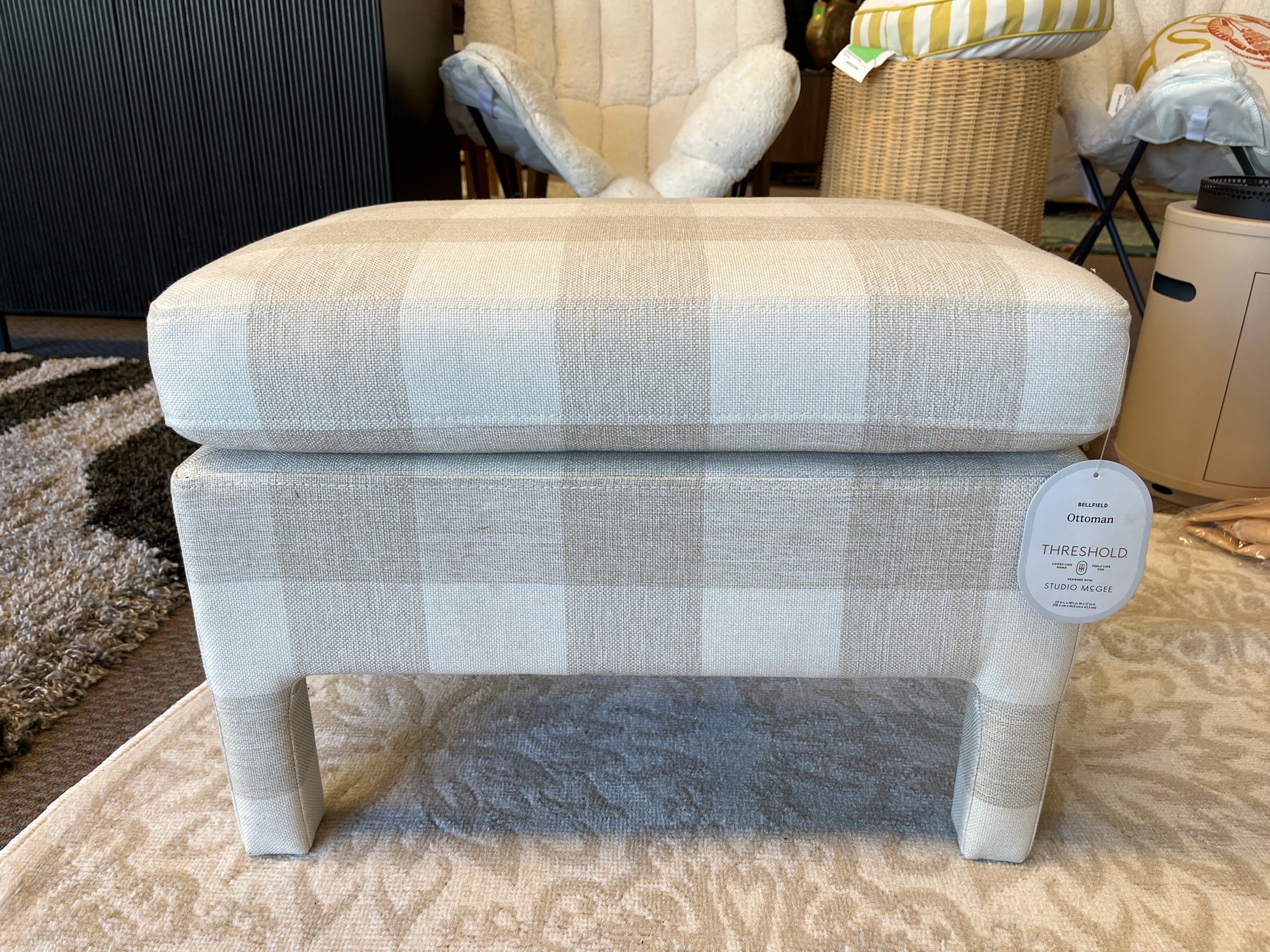 Bellfield Fully Upholstered Ottoman Checkered - Threshold designed with Studio McGee | Retail Price: $110