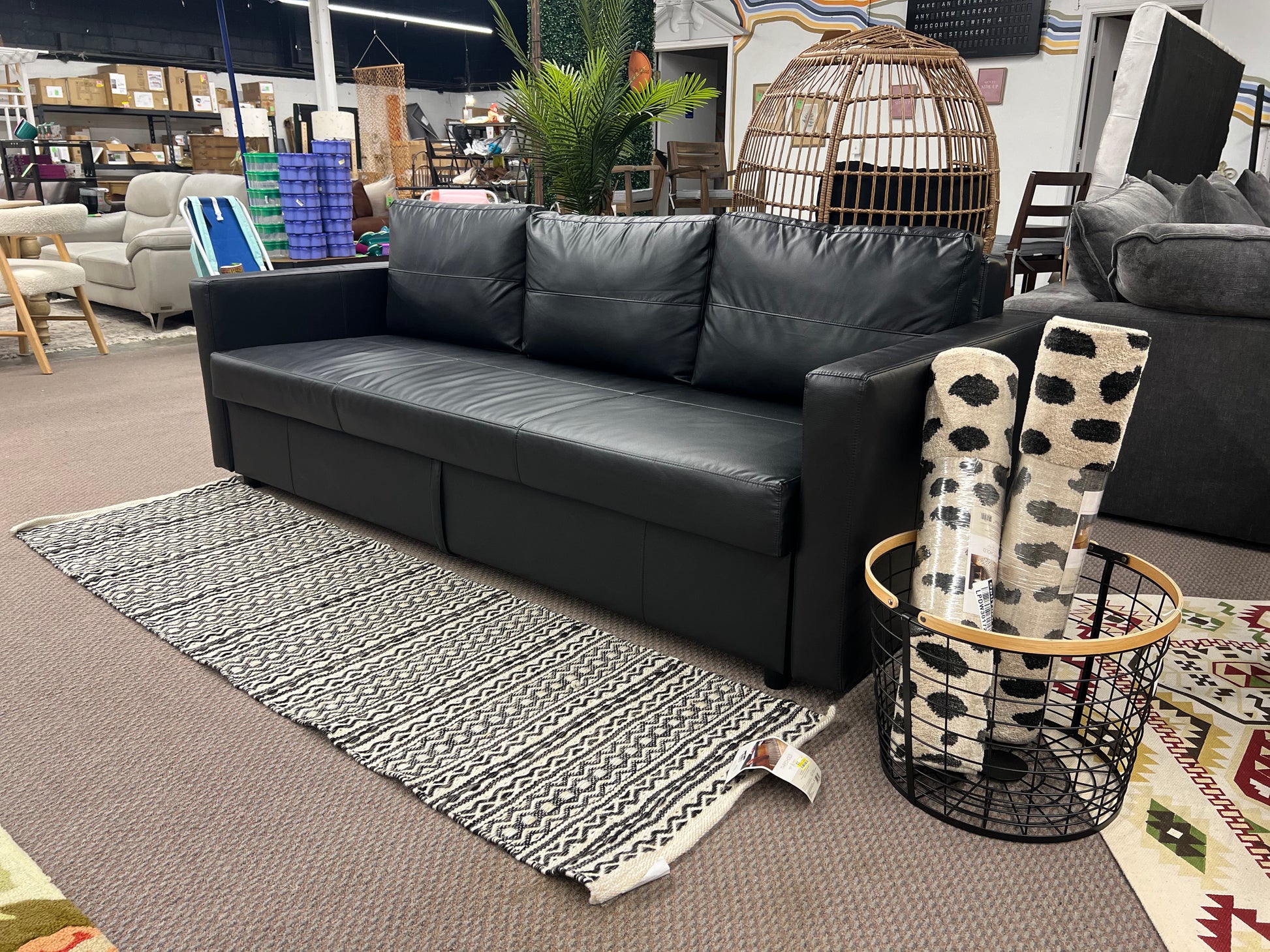 Black 3 Seat Leather Storage Sofa