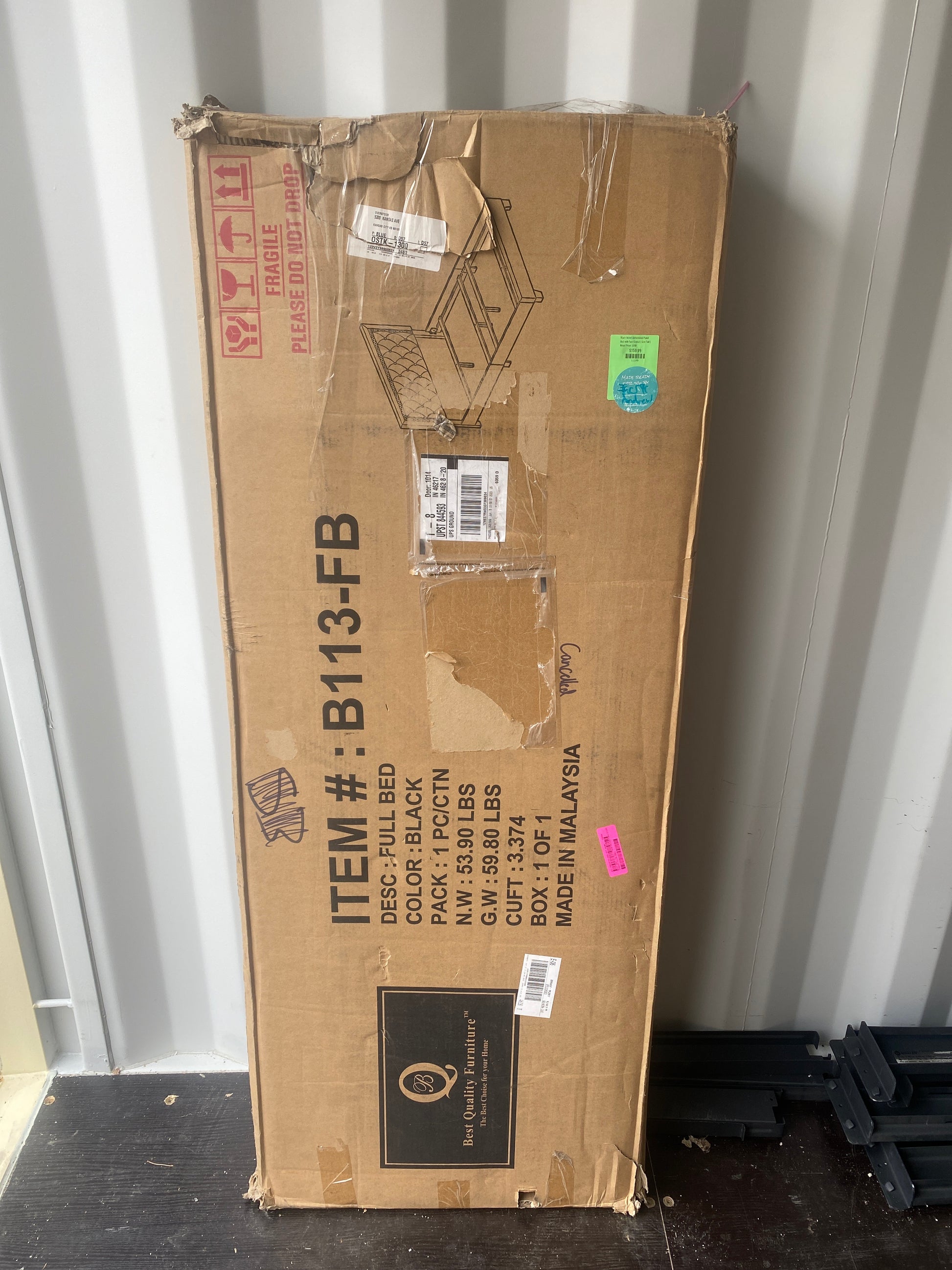 Black Velvet Upholstered Panel Bed with Faux Crystal | Size: Full | Retail Price: $330