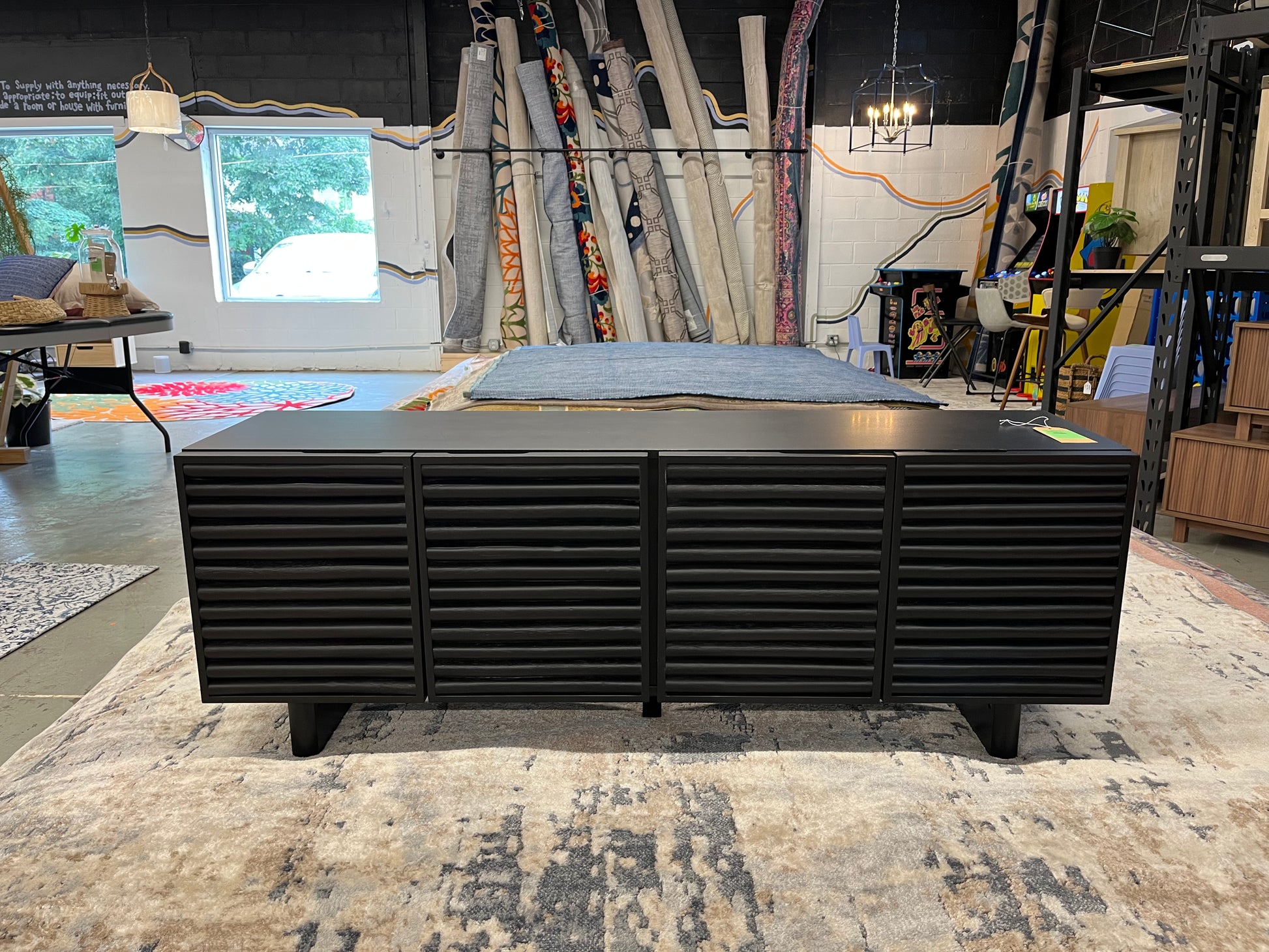 Fluted TV Stand for TVs up to 55in Black - Threshold: Entertainment Center with Adjustable Shelves | Retail Price: $400