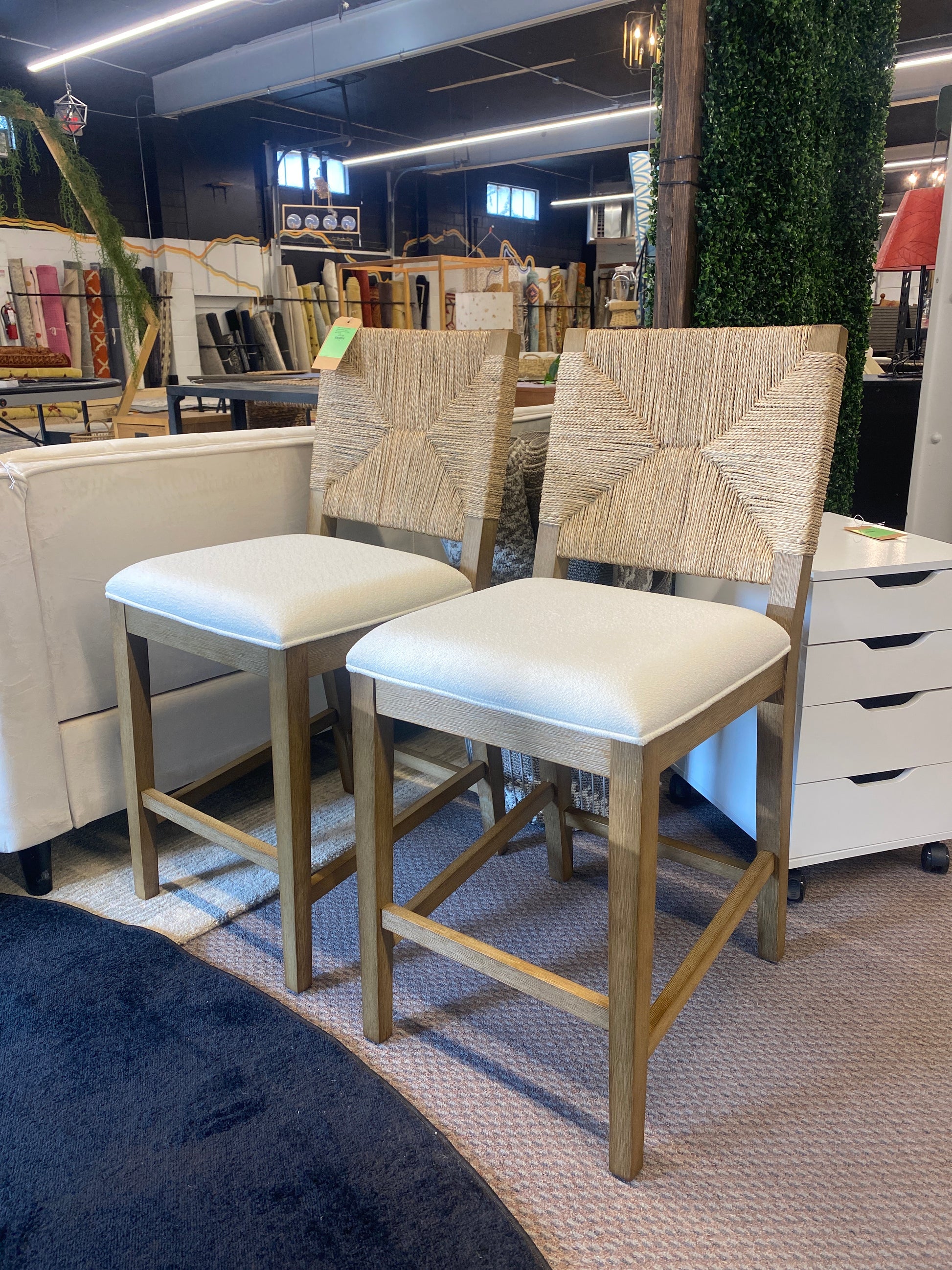 Nathan James Set of 2 Beacon Seagrass Counter Height Barstools Cream Boucle | Retail Price: $461.99