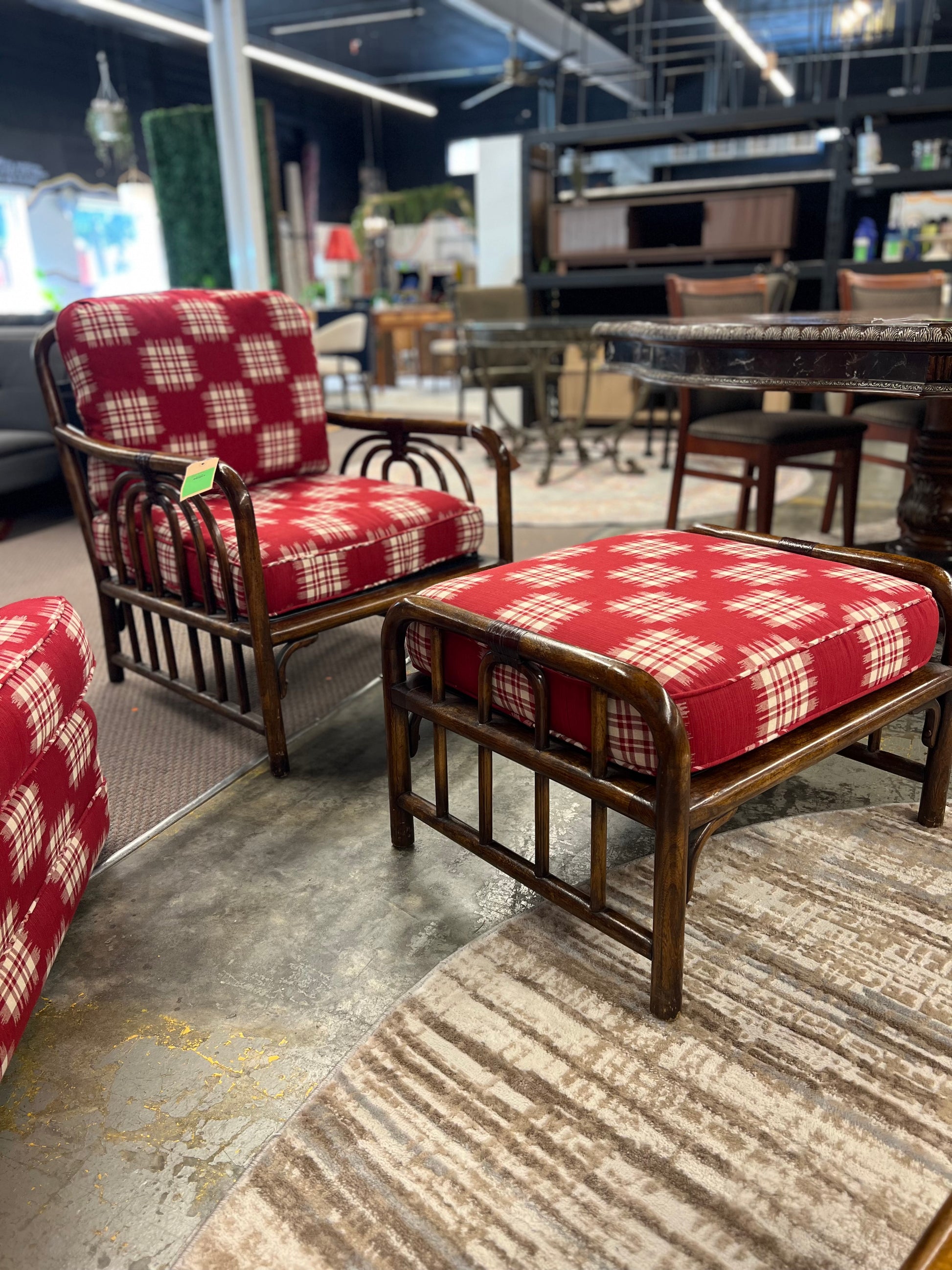 Vintage Caned Southwestern Style Chair with Ottoman *donated